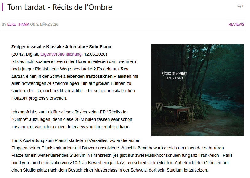 Im Jahr 2024 habe ich „Dans le miroir 2 » komponiert, aufgenommen und online gestellt und habe viel positives Feedback erhalten.